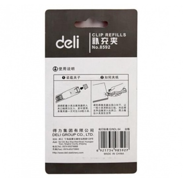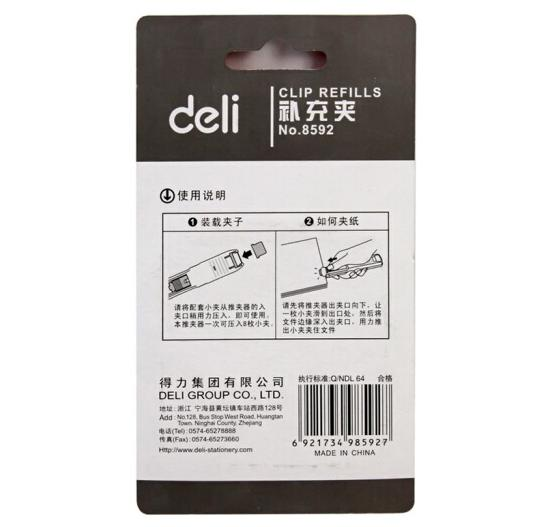 - 商品名稱:得力 8592 推夾器補充夾 無釘可夾40張大容量夾紙器 銀色 50枚/卡
